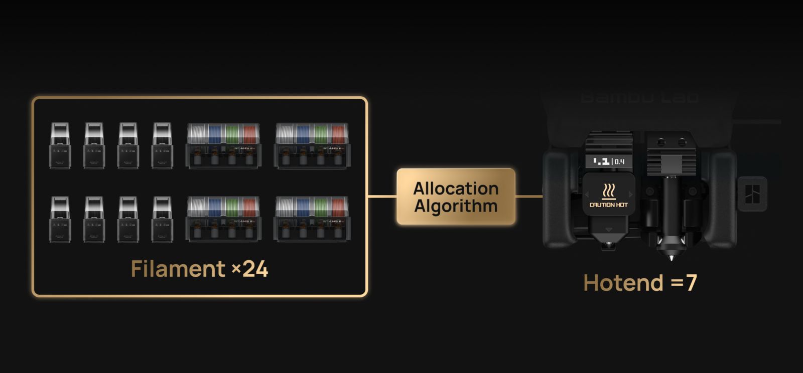 Unlimited Colours, Unlimited CreativityWith up to seven dedicated hotends — and up to 24 colours when paired with the AMS — your palette is no longer limited by how many nozzles you have. Create vibrant, multi-colour prints with minimal purge waste. |
