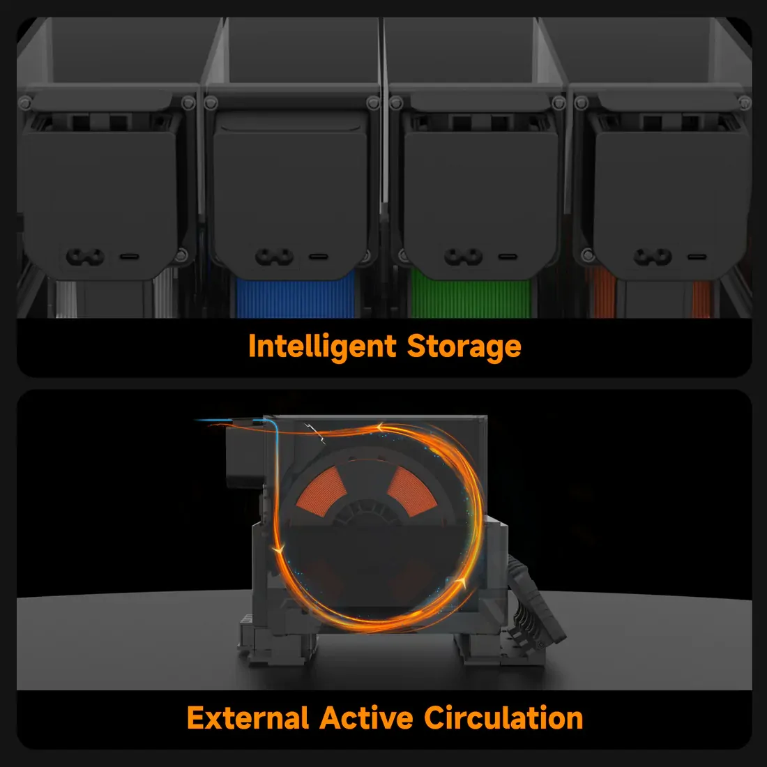 The Tetras is especially well-suited for multi-material environments, including AMS-style systems, where consistent filament condition is critical for reliable switching and print performance.