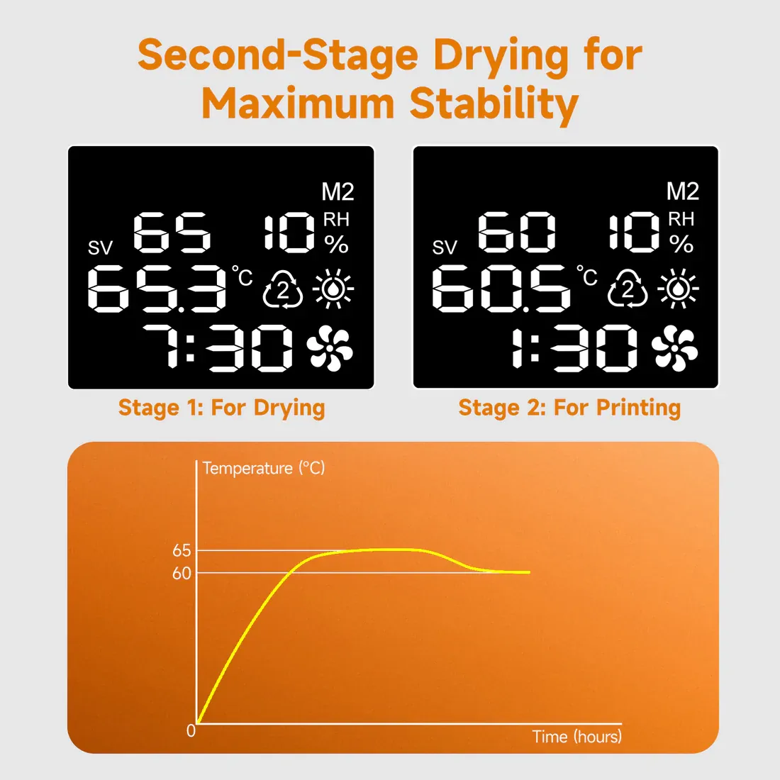 Built-in humidity sensors provide live feedback, allowing you to monitor internal conditions and maintain optimal filament storage at all times.