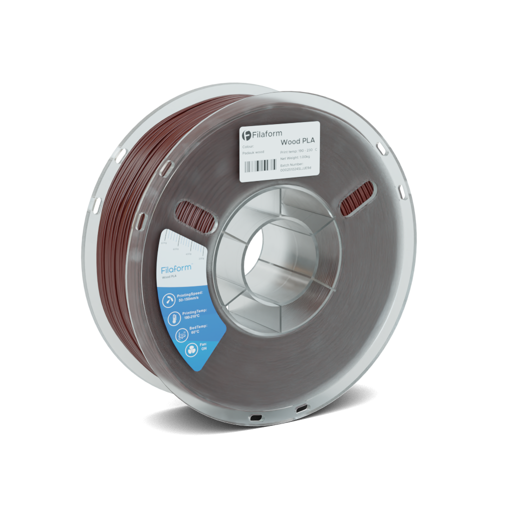Filaform Wood PLA combines premium PLA with fine wood fibres to create prints with natural wood-like textures and finishes. Each spool produces unique grain patterns, delivering authentic wooden aesthetics straight from your 3D printer.