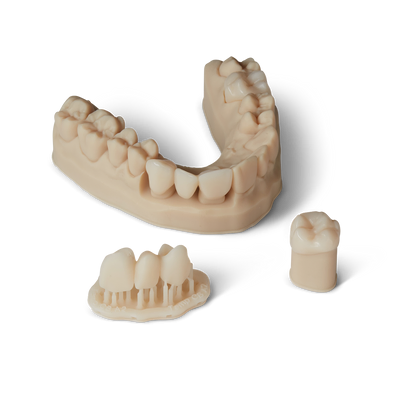 A versatile ceramic-filled, biocompatible restorative resin for printing high-accuracy single units, bridges, and denture teeth — with natural translucency and an efficient production workflow.