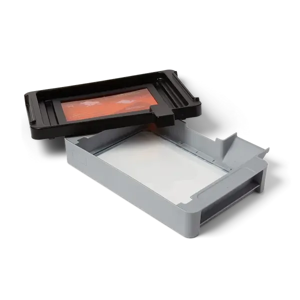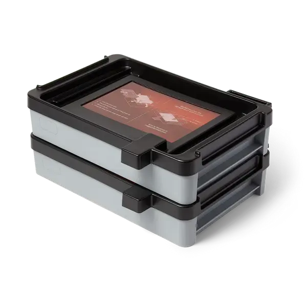 Low Force Display (LFD)™ 3D printing uses a flexible yet strong dual-layer film tank for consistent, high-quality prints. Every resin tank includes a reusable lid, making it easy to stack tanks and store resin outside of the machine. With a separate tank for each individual resin color or type, switching materials is as easy as sliding in a new tank.