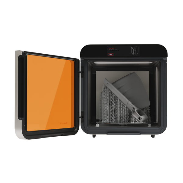 Form Cure L V2 precisely combines heat and 405 nm light to deliver tough, strong prints with unprecedented speed and consistency. Now you can post-cure large Form 4L/BL prints in as little as 60 seconds, with 5x more UV power, faster heat-up times, and a 26% reduction in overall footprint from the previous generation while curing up to 19% larger parts. To begin curing, just select a validated preset for Formlabs 45+ materials. Advanced users can customize time and temperature to fit their specific needs.