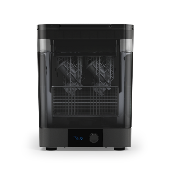 Form Wash automatically cleans printed parts thoroughly and efficiently with IPA or alternative solvents. Keep parts directly on the Build Platform as you transition them from the printer to Form Wash, or remove parts and place them in the wash basket. Parts are precisely and thoroughly agitated in solvent with an impeller, getting every nook and cranny perfectly clean, automatically for the appropriate time. When washing completes, the Form Wash automatically raises parts out of the IPA so they can air dry.